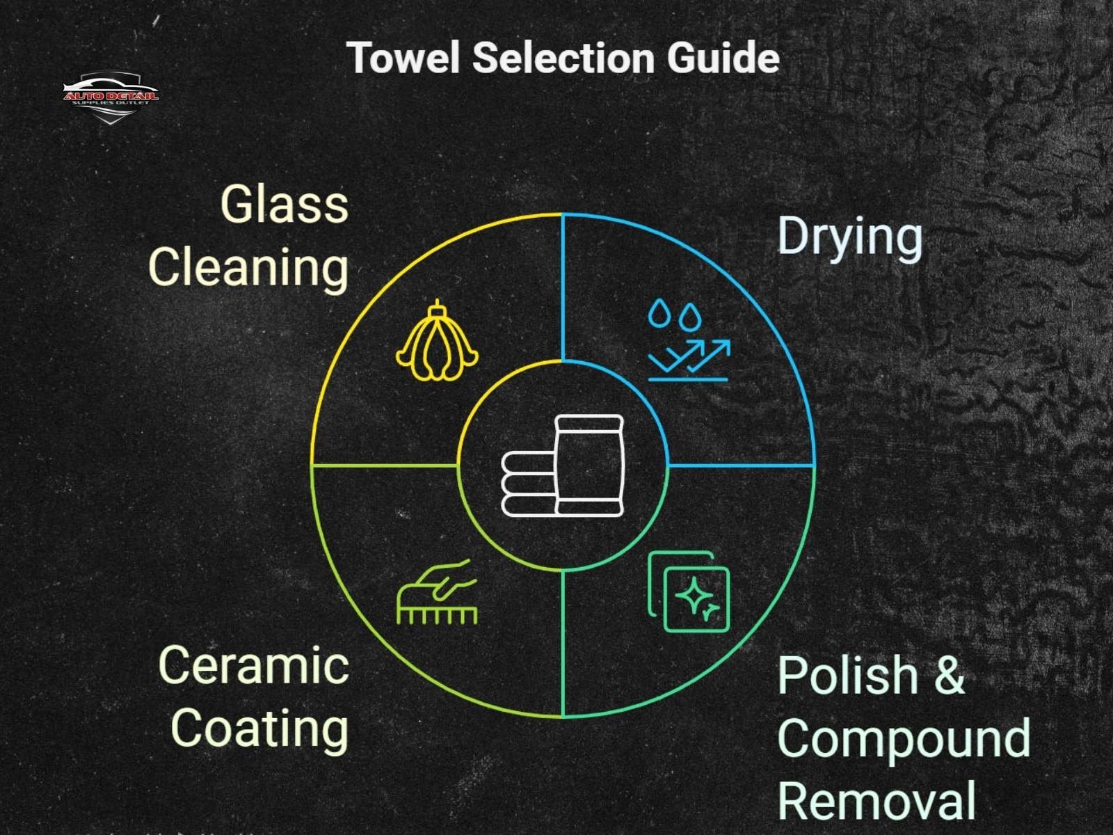 Pile is the fiber length. Choose a High Pile (plush, long fibers) towel to trap dirt safely during a waterless wash. Choose a Low Pile (short nap) towel to wipe off Ceramic Coating residue, as it provides more "bite" and prevents streaking.